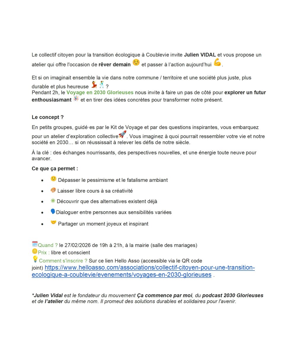 "Voyage en 2030 Glorieuses" à Coublevie vendredi 27 février