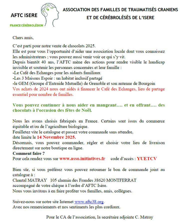 AFTC - Association des Familles de Traumatisés Crâniens - Opération vente de chocolats de Noël