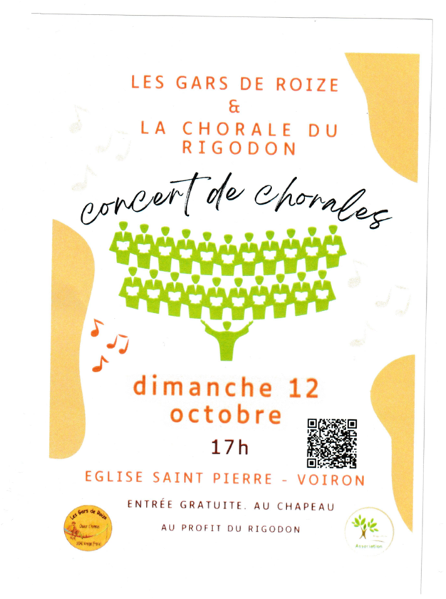 Dimanche 12 octobre - 17h00 - concert de chorales - Voiron - au profit du Rigodon