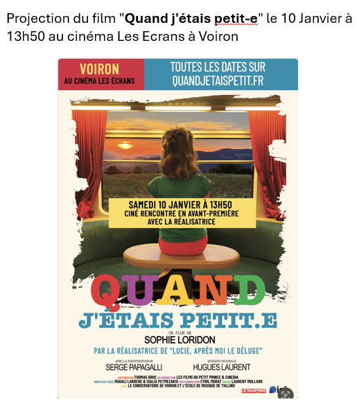 projection du film «Quand j’étais petit-e» le 10 janvier à 13h50 au cinéma Les Écrans à Voiron